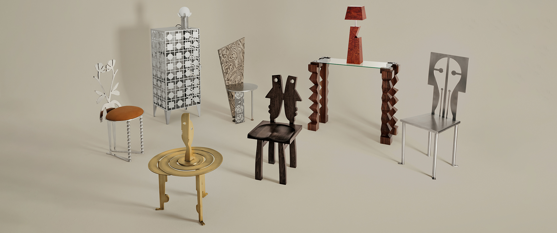 Each piece emerges not merely as furniture but as a figure, part object, part character, shaped by the language of myth, performance, and art.